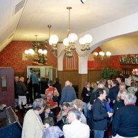 2/20/10 - 27th Annual Crab Feed, Italian American Social Club, San Francisco - Members and guests enjoying cocktails before the crab feed begins. Just to left of the column is Emily Powell Palmer and Enrico Micheli.