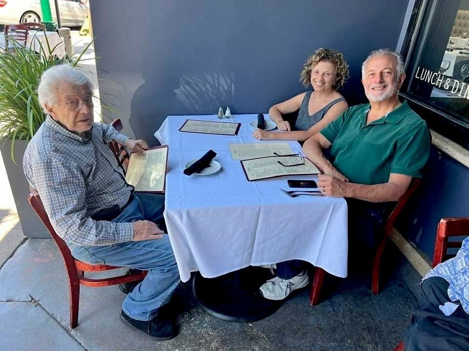 9-1-25 - Joe (on left), Terry, and Nick Farrah enjoy lunch on Broadway in Burlingame.