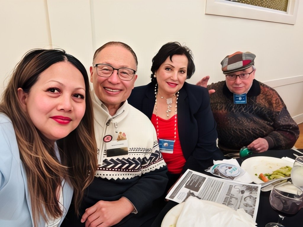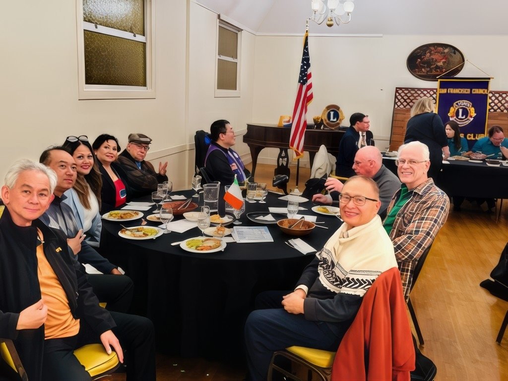 11-19-25 - Photo by Gregory Leung - SFCCLC meting hosted by the Geneva-Excelsior Lions, Italian American Social Club, San Francisco - Two of our membert, Lions Zenaida & Bob Lawhon, on the right, with two visiting Lions.